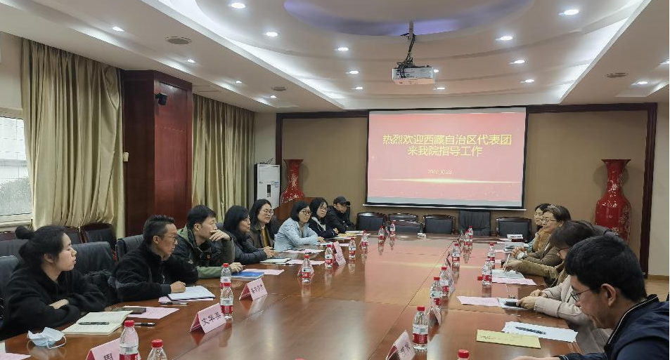 2023年3月20日上午,西藏自治区农牧科学院农产品开发与食品科学研究所张玉红副所长、张文会研究员、刘生伟副处长等一行11人,来新葡的京集团8814vip调研实验中心建设。周建飞副院长、贾利蓉教授以及轻工科学与工程实验中心(副)主任肖红艳、王忠辉、何贵萍、颜俊等参与接待。调研小组先参观皮革楼、纺工楼近3000平方米的轻工科学与工程实验中心工科教学平台、物检平台、科研平台以及专业实验室,然后进行座谈交流。