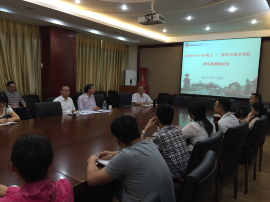 2017年5月26日上午10点在轻纺与食品学院皮革楼209会议室,波尔多第一大学终生教授Didier Astruc为青年教师开设了一场别开生面的座谈会,来自皮革、纺织、食品专业的26位青年教师参加了此次座谈会。由何有节院长主持, Didier Astruc教授介绍了法国高校教师的工作基本情况。老师们就在专业领域研究中遇到的技术问题,向Didier Astruc教授咨询请教,Didier Astruc教授进行全面详细的解答。同时欢迎新葡的京集团8814vip青年教师到法国第一大学进行学术交流和访问。