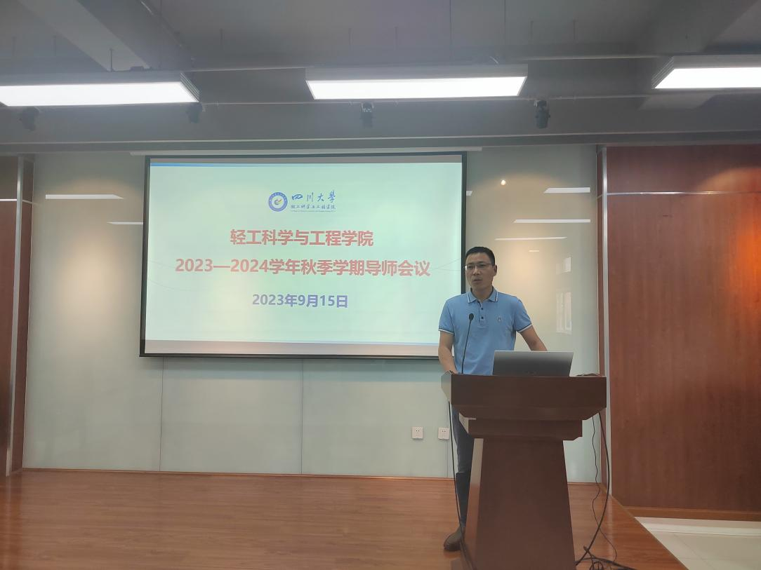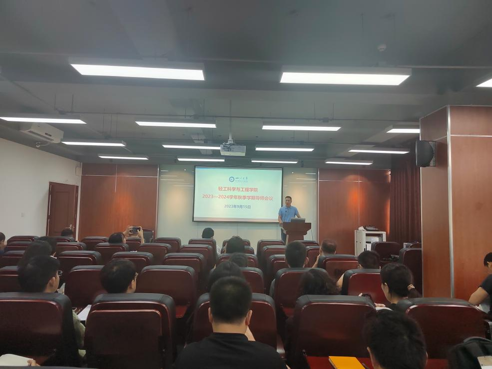 为明确班主任、导师工作职责,见面会前,学院举行了全体导师会议。彭必雨院长向全体导师传达了学校和学院新学期工作部署安排,并就2023级本科生导师制提出了工作要求。冯国涛副书记全面介绍了学院本科生近年培养情况、2023级本科生录取情况以及导师的主要内容,并希望全体导师密切加强和辅导员、班主任工作联动,深入落实“爱生如子”的工作要求,助力每一位“轻工学子”成长成才!