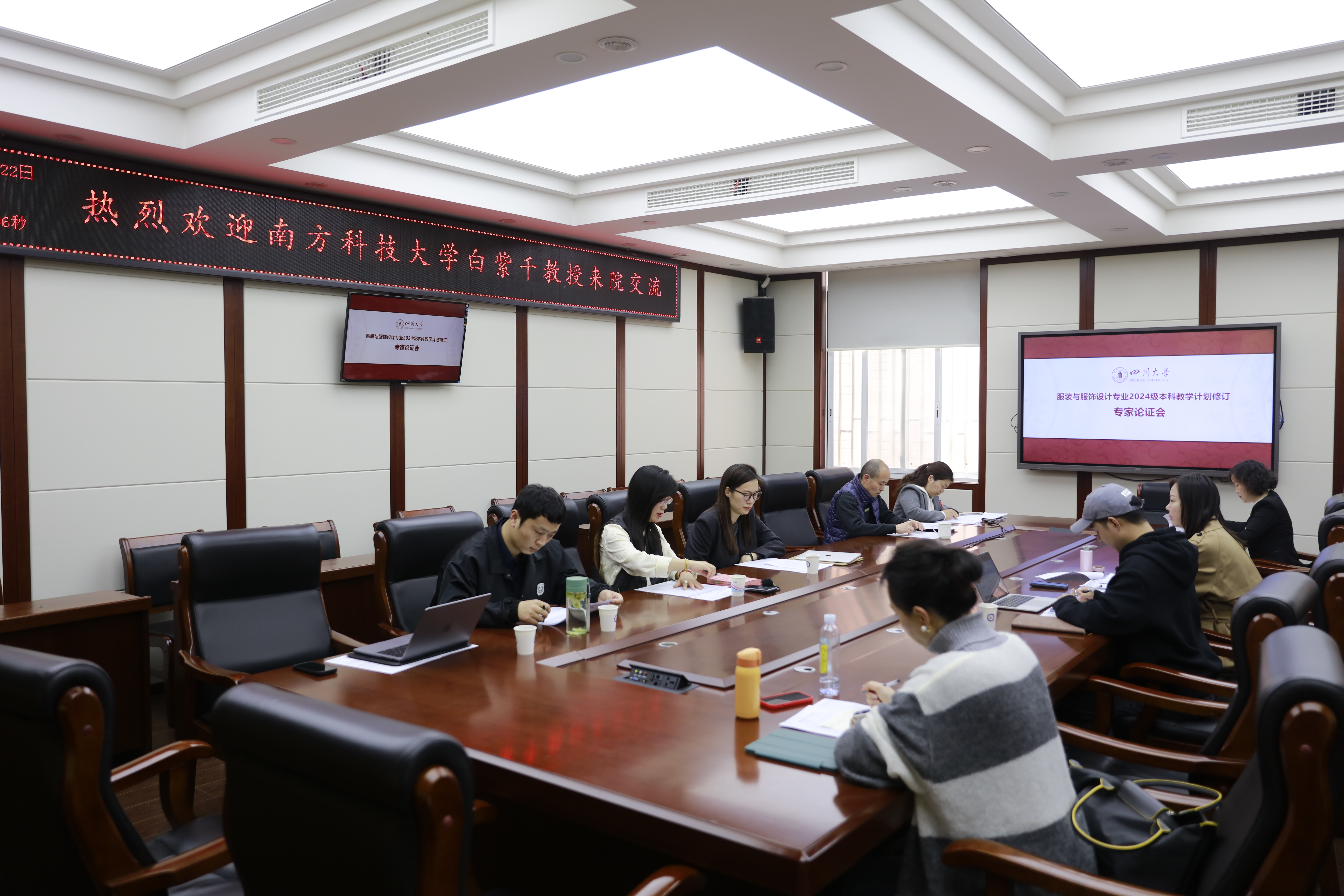 2024年3月22日下午,新葡的京集团8814vip服装与服饰设计专业在四川大学望江校区纺工副楼205会议室举行了2024级本科教学计划修订专家论证会。服装与服饰设计专业教师代表参加了会议,南方科技大学助理教授白紫千老师受邀为论证专家,副系主任申鸿老师主持会议。