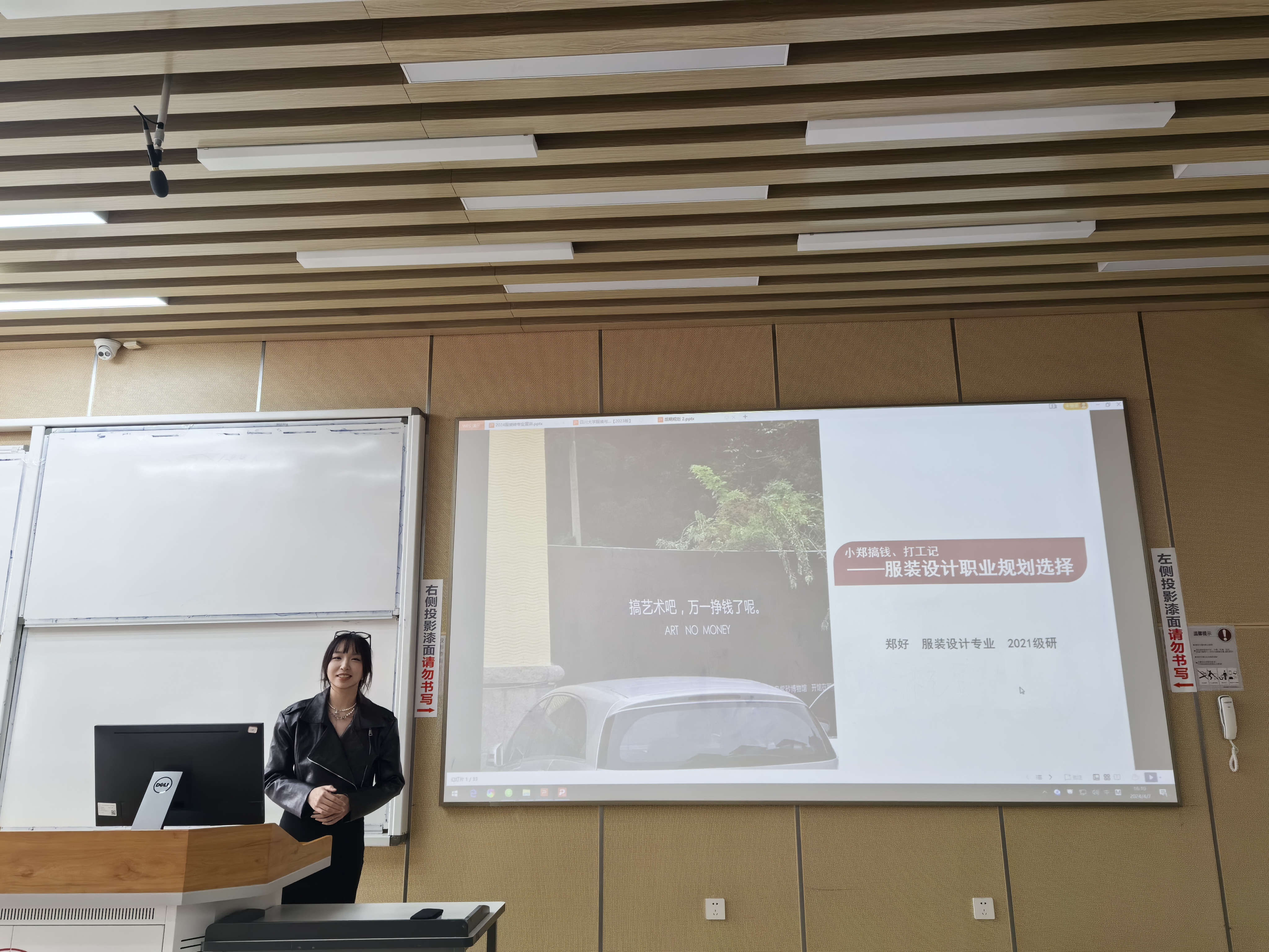 其次,服装与服饰设计系主任杨璐铭教授给同学们介绍了本专业的历史沿革、办学定位、培养目标、师资力量、人才培养体系及丰富多彩的实践及国际交流活动。同时,与同学进行了深入的交流与互动。