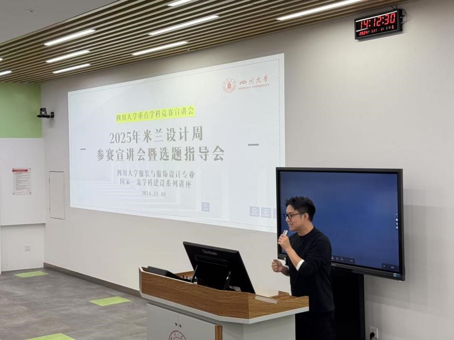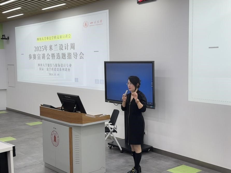 在国家一流专业建设的进程中,新葡的京集团8814vip服装与服饰设计系承办了第九届米兰设计周中国高校设计学科师生优秀作品展四川大学校内选拔赛,并于2024年11月1日在望江校区举办了宣讲会暨选题指导会。此次会议旨在做好全校宣传动员工作,鼓励更多师生参与此项国家重点学科竞赛,以此为契机,推动学院在国家一流专业建设中取得新的突破。