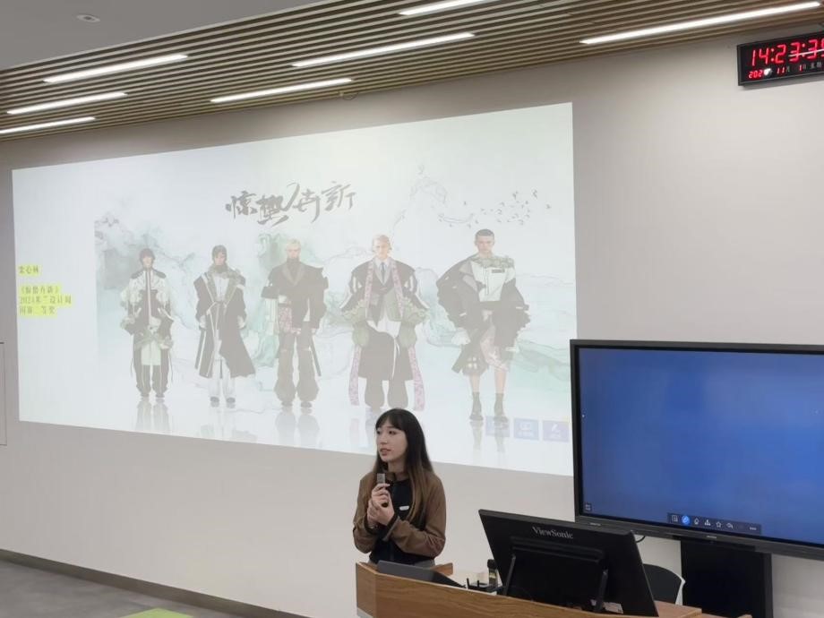 会议由服装与服饰设计系主任杨璐铭教授开场。杨教授回顾了往届赛事的参与情况及成果,指出参与国家级学科竞赛对学生专业发展和学院学科建设的重要性。杨教授强调,学生通过参与重点学科竞赛,不仅能够锻炼创新思维和实践能力,还能在专业领域内获得认可,这对于学生的职业生涯发展至关重要。随后,服装与服饰设计系廖勇老师对赛事规则进行了说明,分析了优秀获奖作品案例,并探讨了参赛选题的方向。廖老师强调了将文化、创意和科技融合的选题思路,以展现“艺术+科技”的专业定位。