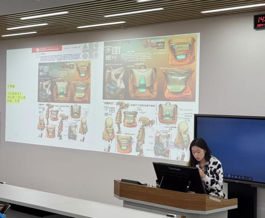 作为会议的一个亮点,往届米兰设计周国赛的获奖者栾心林、于博涵、王佳洋同学也上台分享了他们的参赛经验。三位同学从创意构思、设计过程、团队合作以及如何应对挑战等多个方面,为即将参加米兰设计周的同学们提供了实用的参考和启发。