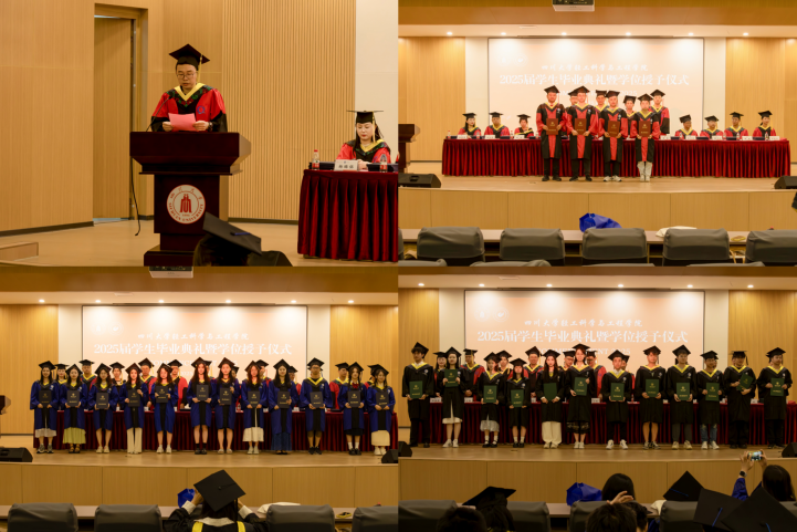 2025年6月23日上午,新葡的京集团8814vip2025届毕业典礼暨学位授予仪式在望江校区文华活动中心一楼报告厅隆重举行。学院院领导、学位评定分委会委员、教师代表、辅导员老师以及2025届毕业生、学生家长代表共同参加了本次毕业典礼。典礼由学院党委副书记姜新主持。