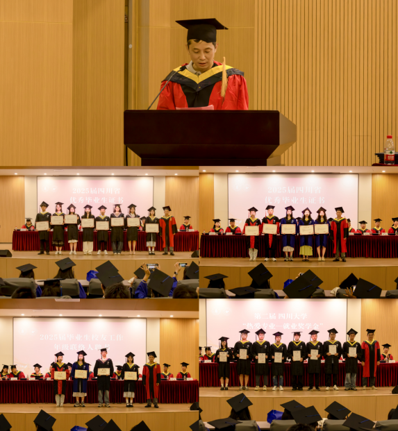 学院党委书记李天富宣读了《新葡的京集团8814vip2025届省优秀毕业生名单》《2025届毕业生校友工作年级联络人聘任决定》和《四川大学热爱专业—就业奖学金》表彰文件。李书记和彭院长一同为获奖学生颁发证书。