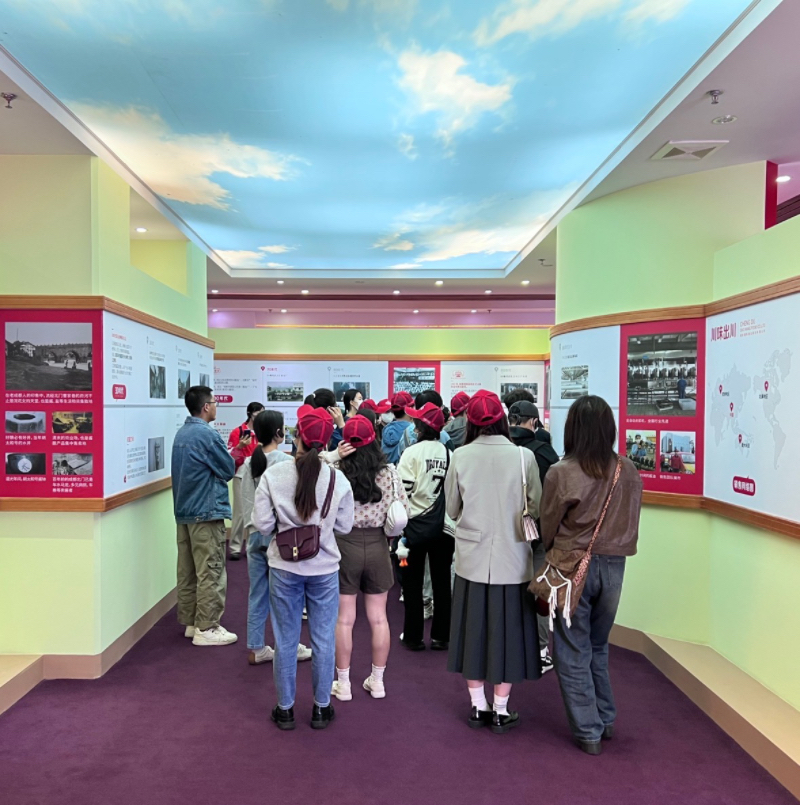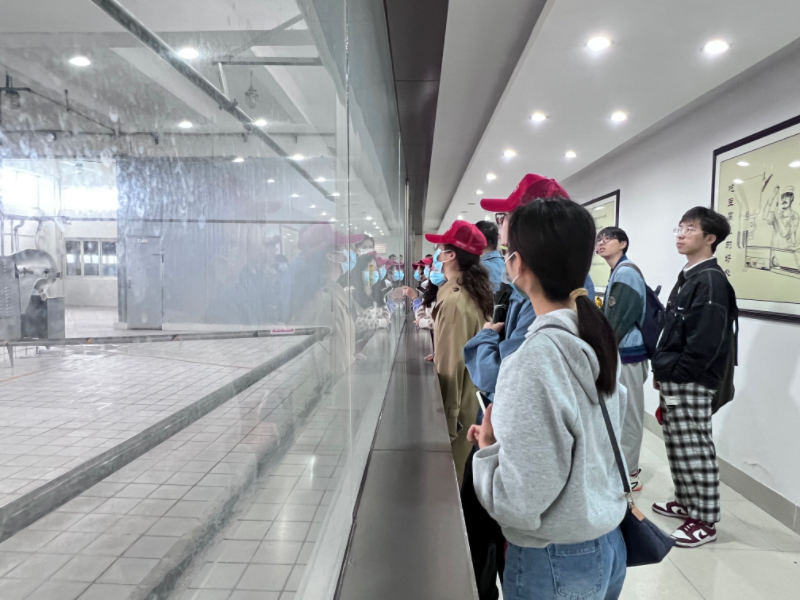 在公司讲解老师带领下,同学们首先参观了公司博物馆。在博物馆同学们不仅了解了公司的历史变迁和多样的产品,还近距离感受、体验传统了古法酿造腐乳的流程。随后,同学们进入厂房,参观了“海会寺牌”豆腐乳现代化生产线。从浸泡、磨浆到划胚接种、制曲、成型,同学们深刻体会到了现代高端、规模化的生产技术在传统发酵食品中的落地应用。