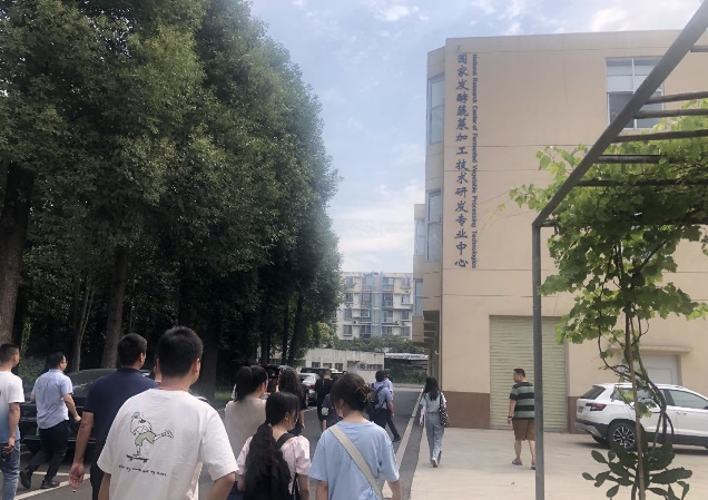 之后,讲解员老师带领大家参观了国家发酵蔬菜加工技术研发专业中心。从中心简介、人才队伍、硬件条件等方面详细介绍了该单位的研发资源和技术水平。接着从工厂设计项目案例的角度给同学们说明了实际成果转化过程中面临到客户需求的多样化及对技术人员多领域知识储备的高要求。最后,食品发酵工业研究设计院的相关人员与参观同学们齐聚一堂交流研讨。同学们根据各自传统发酵食品课题中遇到的问题积极向研究院的专家们寻求建议和帮助,收获颇丰。