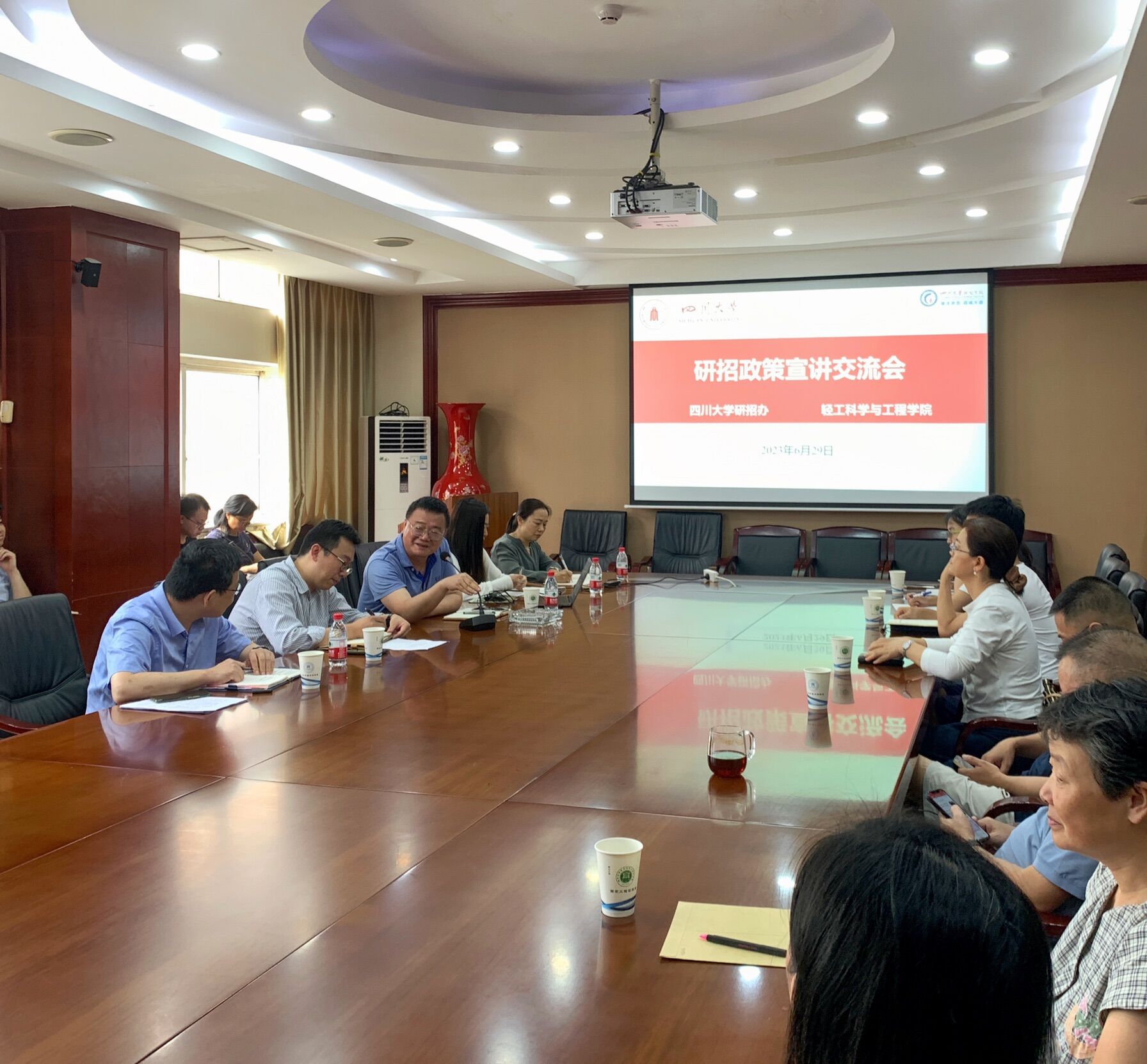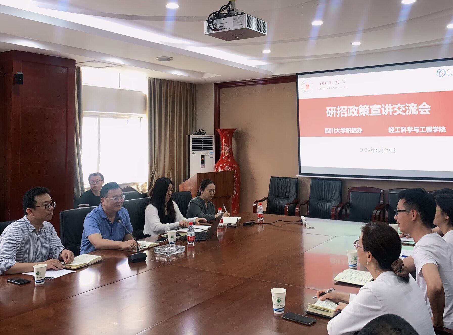 2023年6月29日下午,新葡的京集团8814vip邀请研究生院招办刘猛主任在学院会议室举行了研究生招生政策宣讲交流会。轻工学院彭必雨院长、冯国涛副书记、迟原龙副院长、廖学品教授、研究生院招生办老师、学院硕博导和其他教学科研岗老师参加了会议。