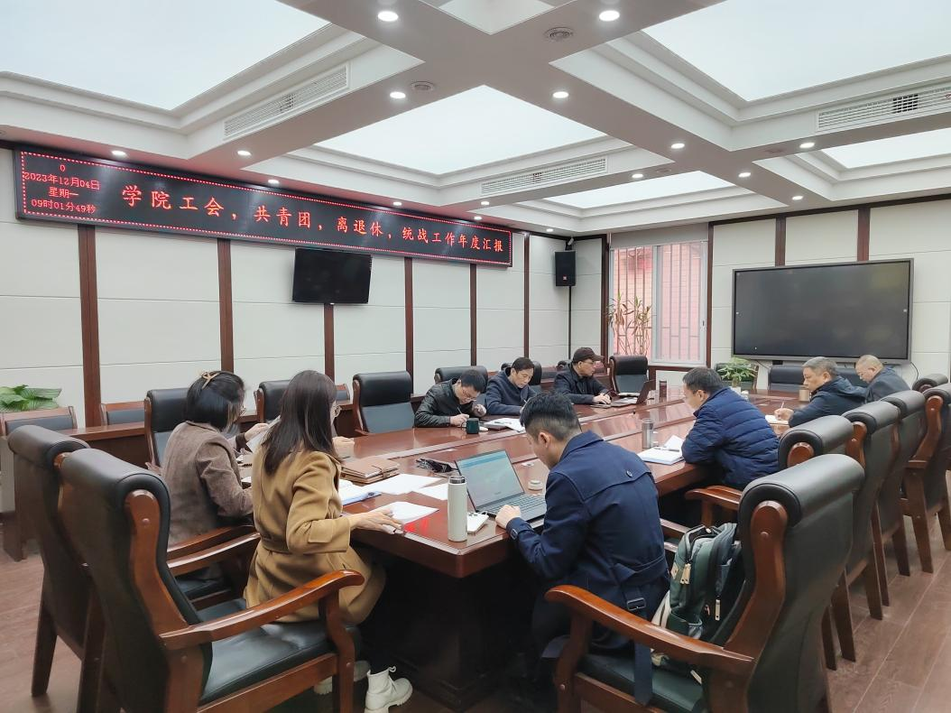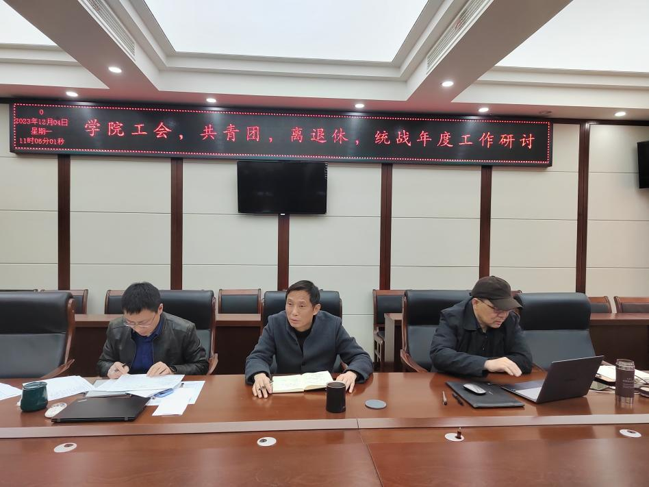 2023年12月4日,学院在纺工附楼205会议室召开工会、共青团、离退休、统战工作2023年度专题研讨会。学院班子成员、党委委员、专职组织员参加会议,李天富书记主持会议。