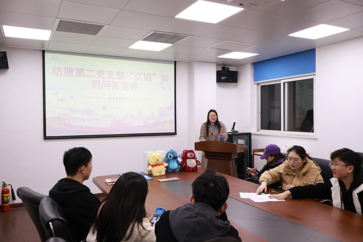 为深入学习贯彻党的二十大精神,传承红色基因,厚植爱国情怀,纺织服装研究生第二党支部于3月21日举办“江姐精神”主题知识竞赛,通过以赛促学、以学铸魂的形式,引导支部成员深入学习革命先烈事迹,汲取奋进力量,党支部全体成员及积极分子参与本次活动。