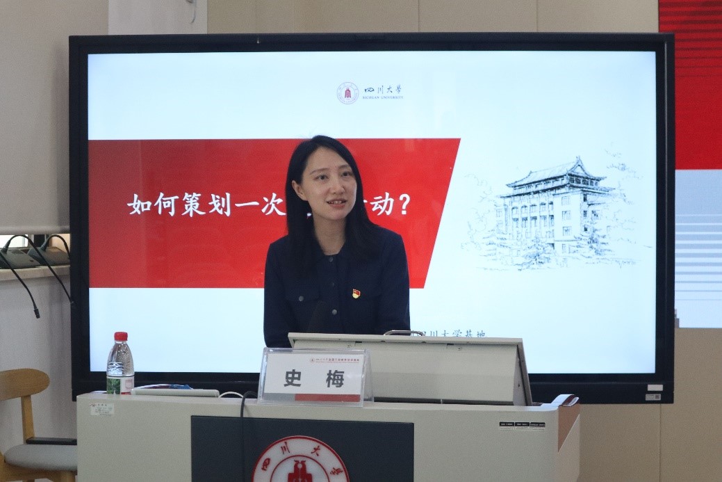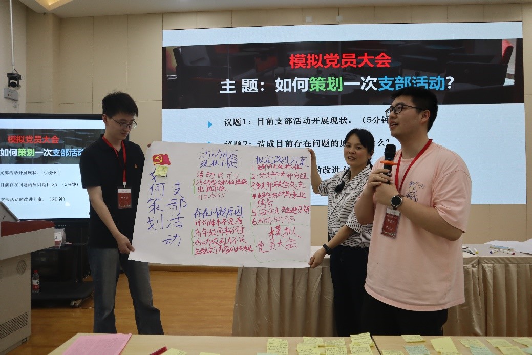 四川大学教育培训部第二党支部书记史梅就“如何策划一次支部活动”进行讲解,并组织模拟党员大会,随机选取三名学员组成支委,并与现场学员充分互动,围绕开展支部活动的难点及其原因展开深入交流,并就如何提升支部活动质量展开讨论。