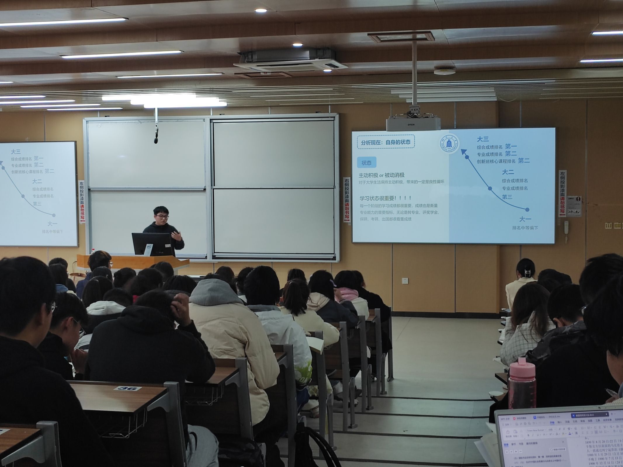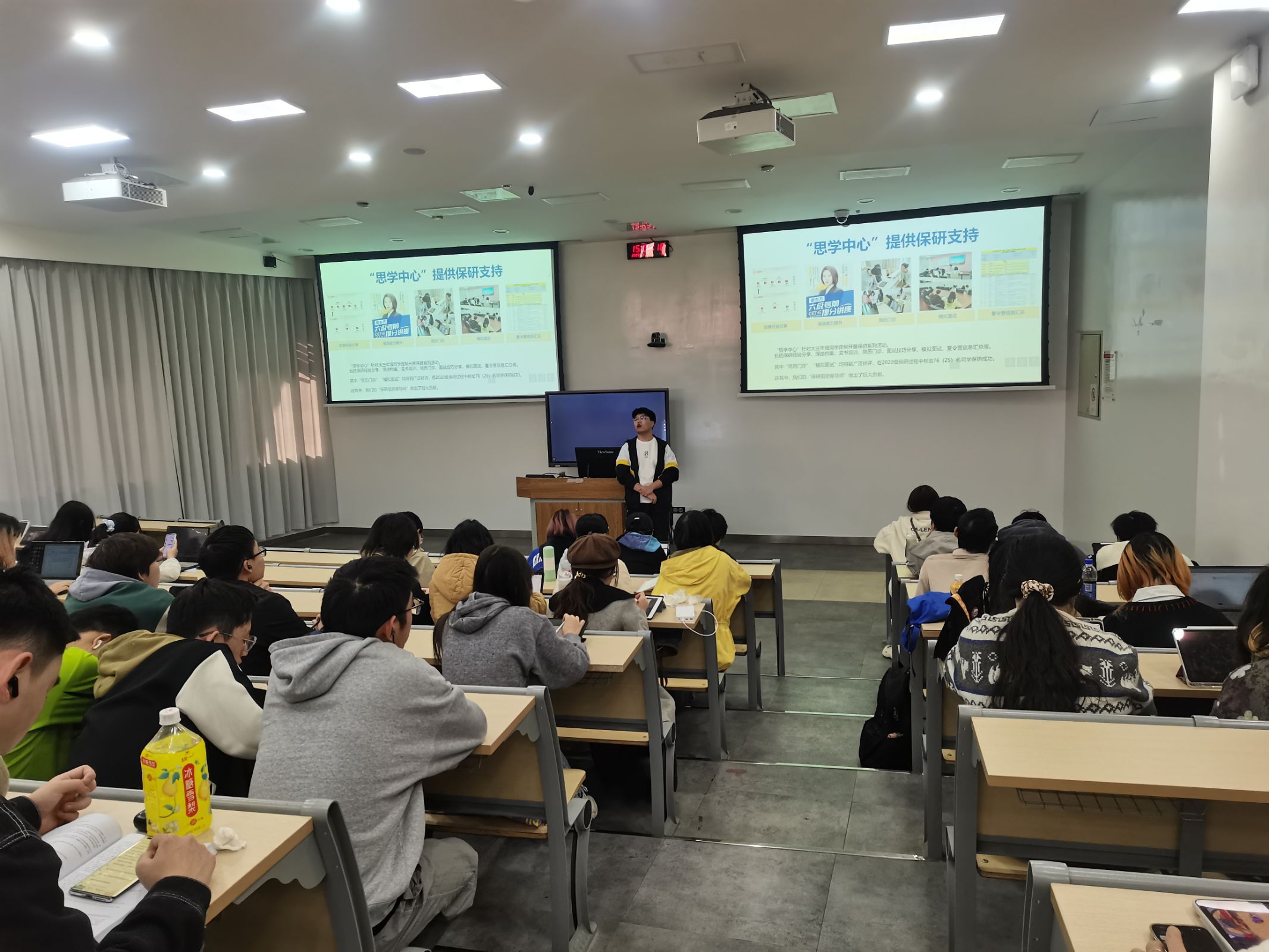为进一步营造良好班风学风,更好帮助学生进行学业规划和职业生涯规划,2023年11月17日下午,新葡的京集团8814vip思学中心针对各年级学生的思想、学习特点分别在江安和望江校区开展职业生涯规划分享会。