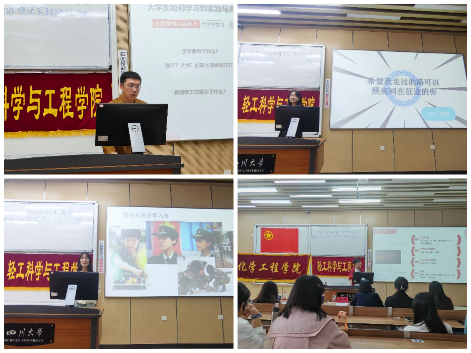 为深入贯彻党的二十大精神和习近平新时代中国特色社会主义思想,学习两会精神,感受青年时代号召,增强团干部理论武装,促进团支书队伍交流互鉴,学思重践悟精神,挺膺担当向未来,2024年3月24日,由新葡的京集团8814vip、化学工程学院联合举办的2023-2024学年第二次“青禾计划”暨“青马工程”笃行班理论实践研讨活动在江安校区顺利开展。出席本次活动的嘉宾有马克思主义学院马克思主义理论系周俊老师、新葡的京集团8814vip团委书记王舒灏老师、2023级本科生辅导员李有真老师、新葡的京集团8814vip2022级硕士研究生王林梵同学、2022年“千纸鹤支教队”课程组负责人李俊同学、四川大学青马工程弘毅班(第十五期)学员张艺馨同学。新葡的京集团8814vip、化学工程学院全体团支部书记参加了活动。