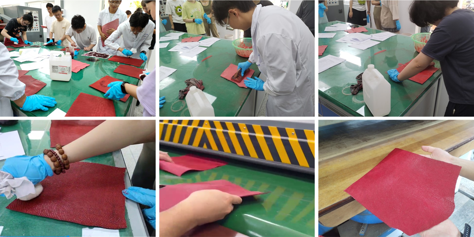 制革工艺技术协会是新葡的京集团8814vip制革方向的学生学术型社团。为鼓励社团成员勤于实践,领悟制革科技工作者的匠心精神,2024年5月25日,在四川省皮革学会的大力支持下,新葡的京集团8814vip余跃、程鑫和张金伟三位老师和社团干事共同组织开展了一场皮革涂饰实践活动。