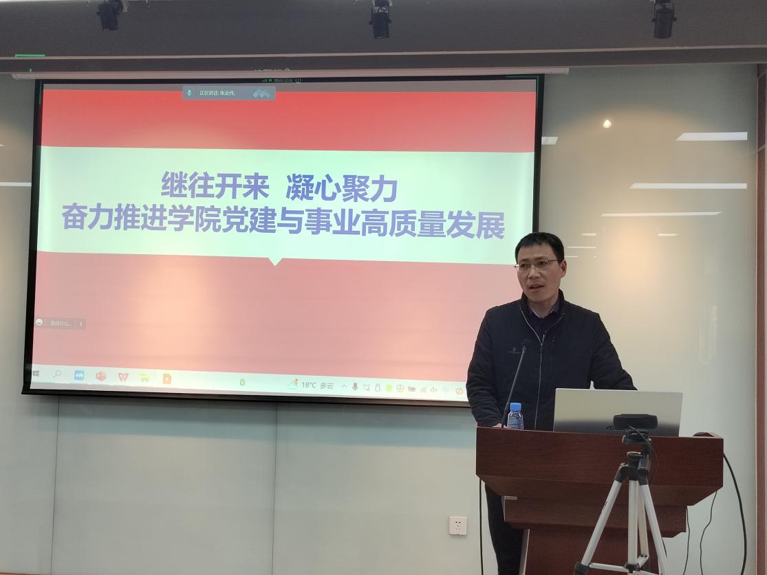 同时,李天富书记就学院2023年党建和人事人才工作进行了布置。李书记强调,本年度学院要紧紧围绕深入学习贯彻习近平新时代中国特色社会主义思想和党的二十大精神,扎实开展好主题教育;坚持和加强党的政治建设;增强基层党组织政治功能和组织功能;建设忠诚干净担当的高素质干部人才队伍;坚定不移推动全面从严治党等五个方面开展党建工作。并对教师绩效分配制度改革、师德师风考核以及人才引进等工作进行了安排部署。