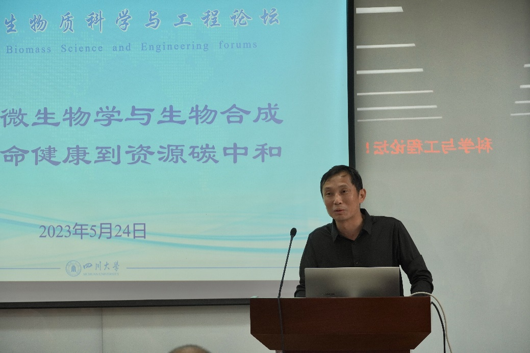 2023年5月24日,由新葡的京集团8814vip、教育部资源碳中和关键核心技术集成攻关大平台、制革清洁技术国家工程实验室、皮革化学与工程教育部重点实验室主办,教育部资源碳中和关键核心技术集成攻关大平台生物质基化学品生物合成团队承办,主题为:微生物学与生物合成--探讨生命健康与资源碳中和,“生物质科学与工程论坛”在四川大学举行。