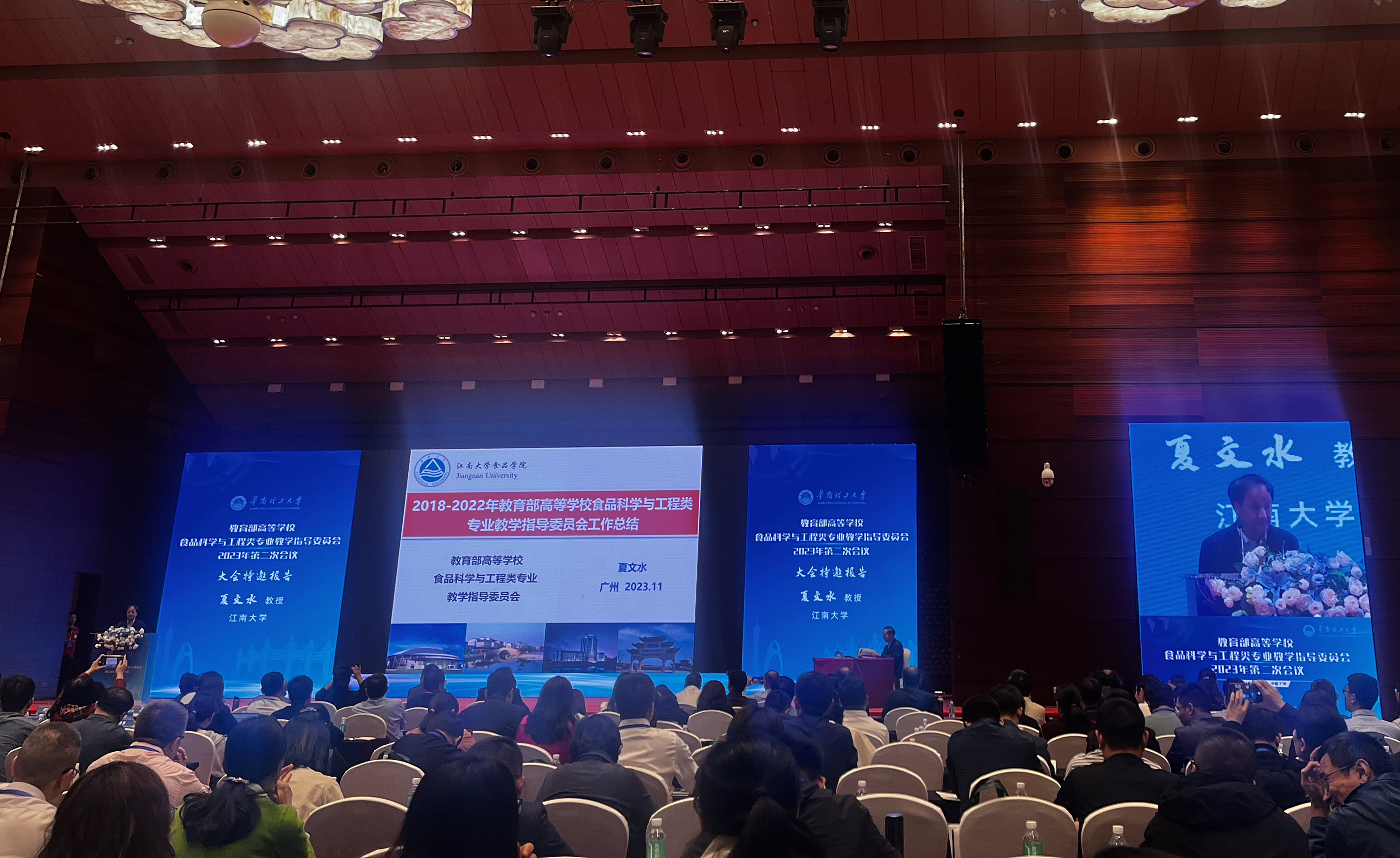 教育部高等学校食品科学与工程类专业教学指导委员会暨教学研讨会2023年第二次会议于2023年11月23-25日在广州召开。教育部高等学校食品科学与工程类专业教学指导委员会主任、副主任与委员,广东省教育厅高教处姜琳处长,以及来自国内127所高校的食品学院领导、食品科学与工程类专业或教学负责人等出席本次会议。新葡的京集团8814vip食品工程系何强、迟原龙、吕远平、段飞霞、董怡、黄伦杰老师,应邀出席大会,何强教授作为教指委委员全程参加各项议题及主题研讨,并主持大会专题交流报告“食品类高校课程建设与改革交流”。