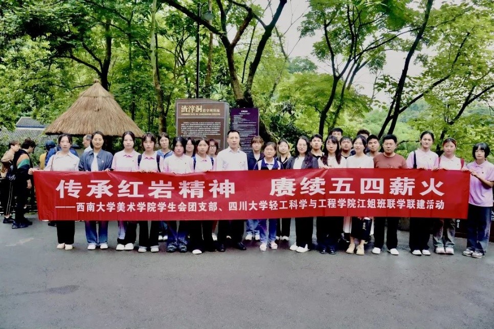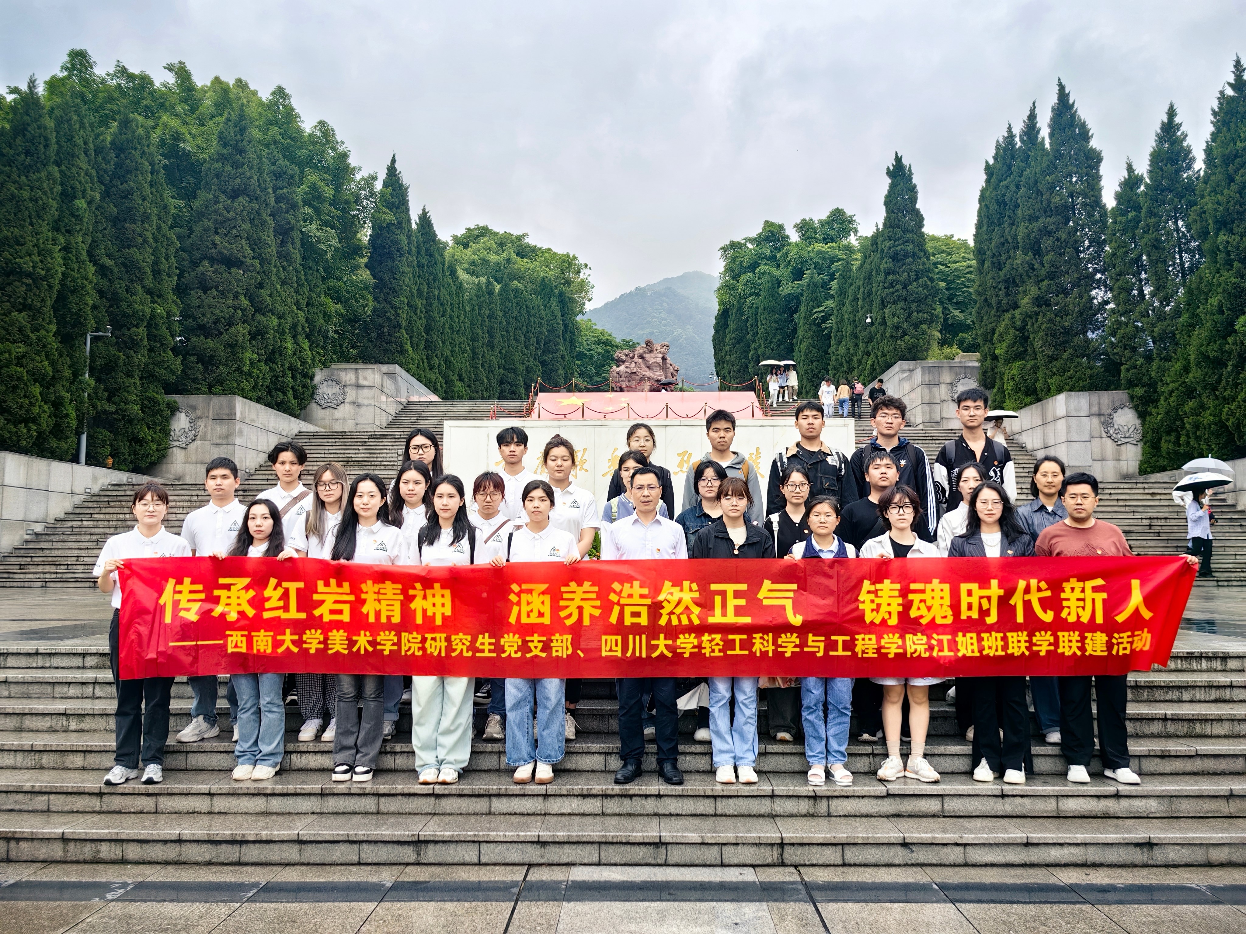 为追寻江姐足迹,学习先辈精神,传承红色基因,2024年5月12日,由新葡的京集团8814vip党委副书记冯国涛副教授带队,学院贺婷、王舒灏等老师以及2022级轻化工程103班(江姐班)学生代表赴重庆渣滓洞、白公馆、歌乐山烈士陵园开展红色实践活动,同时与西南大学美术学院团委学生会功能型团支部及研究生党支部开展联学联建活动。