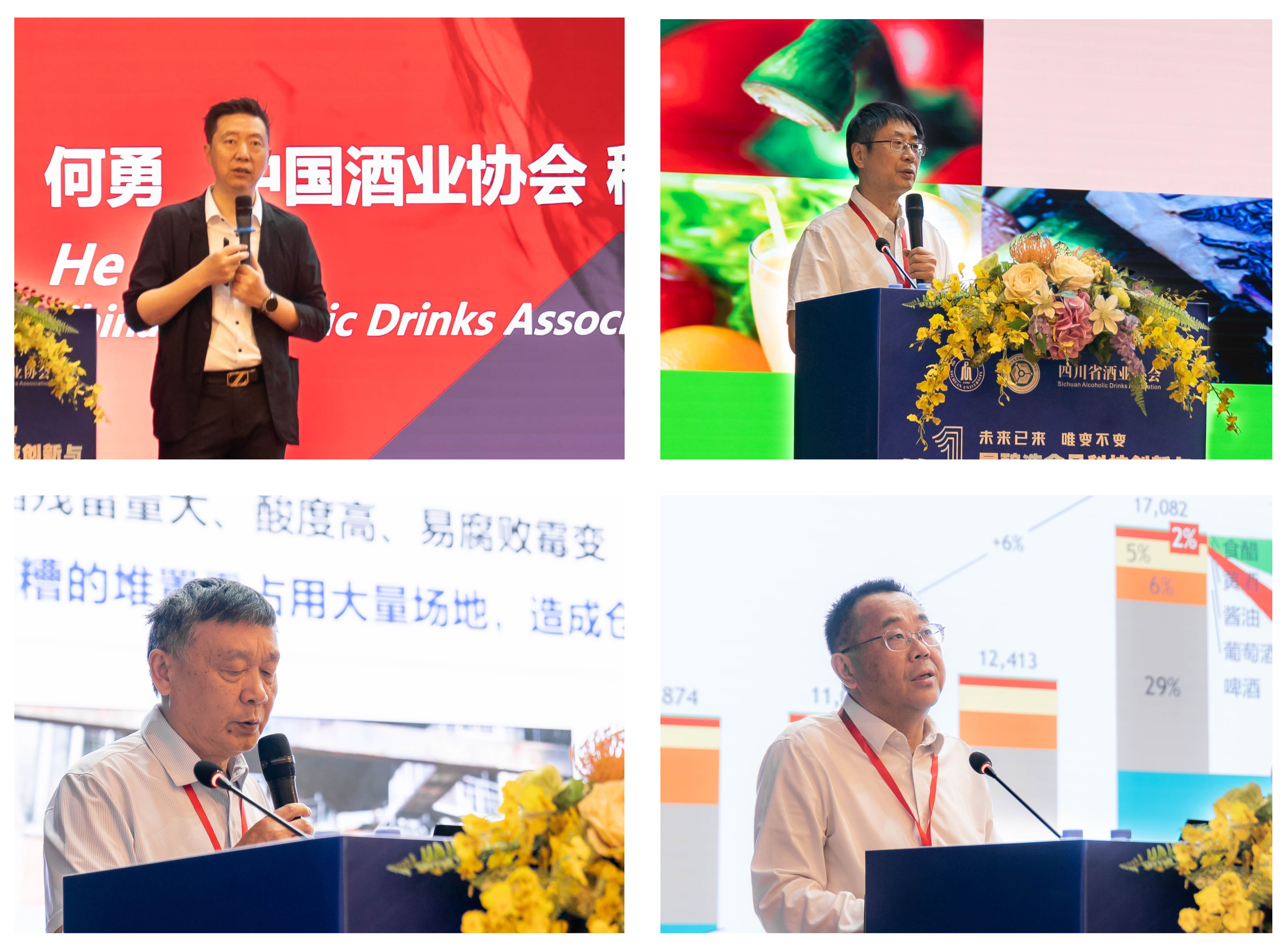 泸州老窖张宿义副总经理、山西汾酒韩英总工程师、江南大学张晓娟教授、四川大学迟原龙教授分别做主题报告