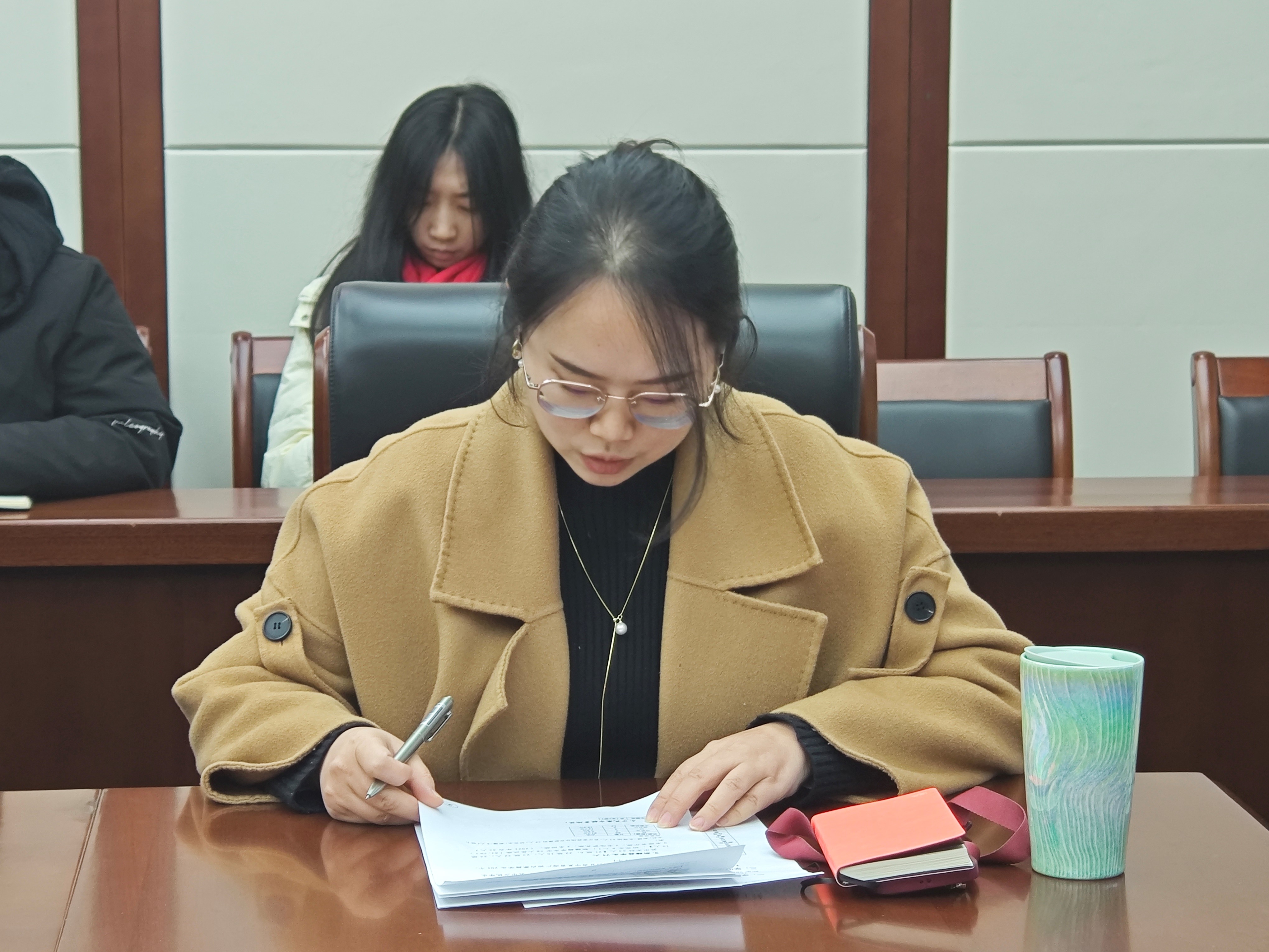 首先,学生事务办公室主任贺婷老师作2024年秋季学期学生思想政治工作情况汇报。贺老师从学院学生基本情况、思想政治工作开展情况与当前学生思想政治工作存在的主要问题三个方面进行了汇报。贺老师谈到,2024年学生思想政治工作通过守好思想政治教育第一课堂这一主阵地,落实习近平新时代中国特色社会主义思想“三进”要求;通过用好思想政治教育第二课堂这一主渠道,促进习近平新时代中国特色社会主义思想在实践中“三进”;通过严格基础管理稳固思想政治教育基本盘、通过项目制建设深化思想政治教育成效,并在学生转专业率、深造率、评奖评优方面取得显著成效。在接下来的工作中,将继续针对当下大学生的特点深化学生思想政治工作。
