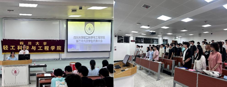 2025年6月27日,新葡的京集团8814vip第二十六次学生代表大会在江安校区召开。大会全面总结学院学生会2024-2025学年工作成效,选举产生新一届学生会主席团成员,审议通过四川大学第三十七次学生代表大会代表及委员候选人推荐名单。学院团委书记王舒灏,学生事务办公室主任余昕玲,辅导员贾欣驹、李有真及全院各年级学生代表参加了本次大会。会议由王舒灏主持。