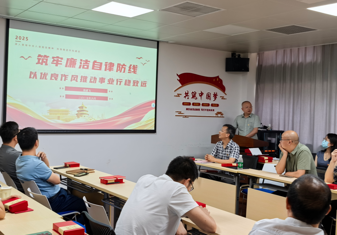 为深入学习贯彻党的二十大精神,持续推进中央八项规定精神学习教育,2025年6月27日,新葡的京集团8814vip皮革教工党支部在望江校区皮革楼205党员活动室举行了以“践行优良作风,筑牢纪律防线——中央八项规定精神学习研讨”为主题的专题研讨会,这是2025年度党员培训第一次集中大课学习后的深化交流研讨活动。研讨会由支部书记李正军主持,学院党委书记李天富、院长彭必雨、党委副书记姜新莅临指导,副院长周建飞同志讲授专题党课。