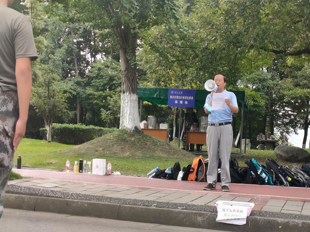 2021年7月14日上午,新葡的京集团8814vip党政领导一行前往四川大学江安校区看望和慰问承担学院2021年军训任务的全体参训学生、教官与带队教师。参与本次军训慰问的领导有新葡的京集团8814vip党委书记刘晓虎副教授、院长何有节教授、党委副书记冯国涛老师。