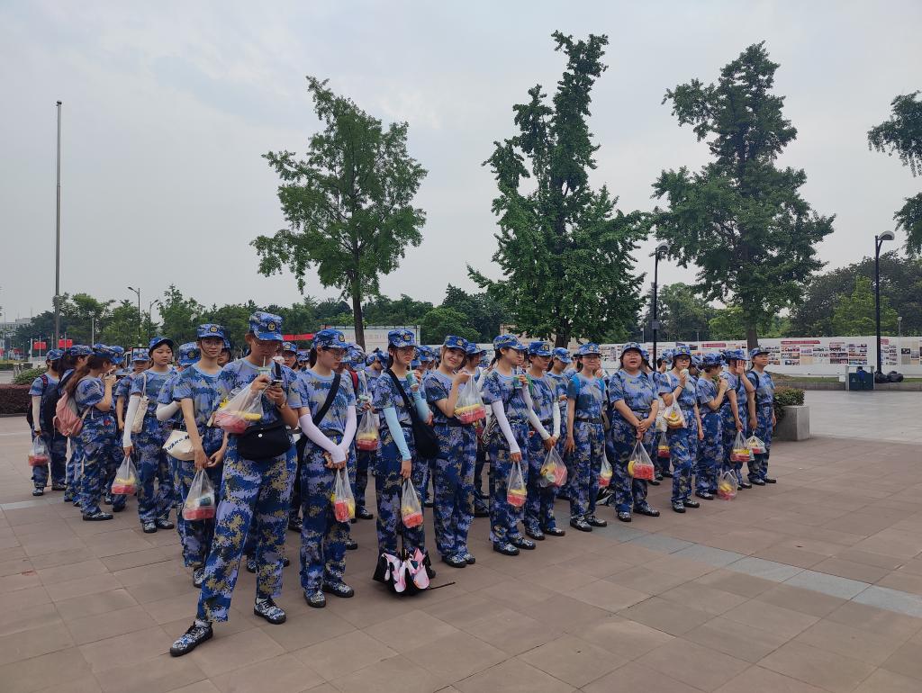 本次慰问中,学院领导不仅给予了同学们精神上的鼓励和支持,也为全体参训学生带来了水果、饮料等慰问品。辅导员贺婷老师、余昕玲老师以及各连队教官共同组织完成分发工作,收到慰问品的同学们在欢欣雀跃之余,也不忘对领导老师们表达感谢之情。