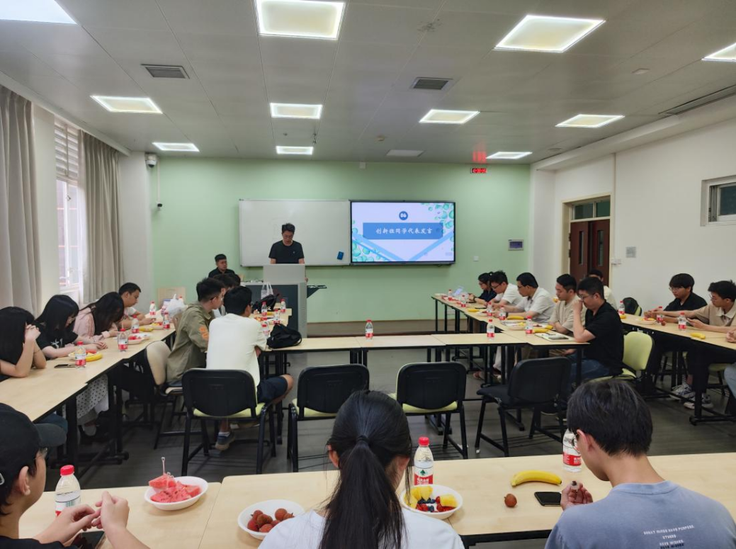 随后,创新班代表柯涛同学讲述了自己从进入创新班至今,一路上的收获与感悟,并表达了对学院以及老师们的感谢,激起了同学们的共鸣。